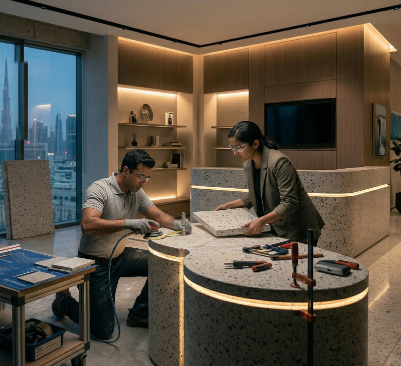 Indiga Stone provides professional on-site installation services to ensure that every fabricated surface is installed accurately and securely. Our installation teams have extensive experience working across various types of projects, including hotels, hospitals, retail spaces, offices, and residential developments.